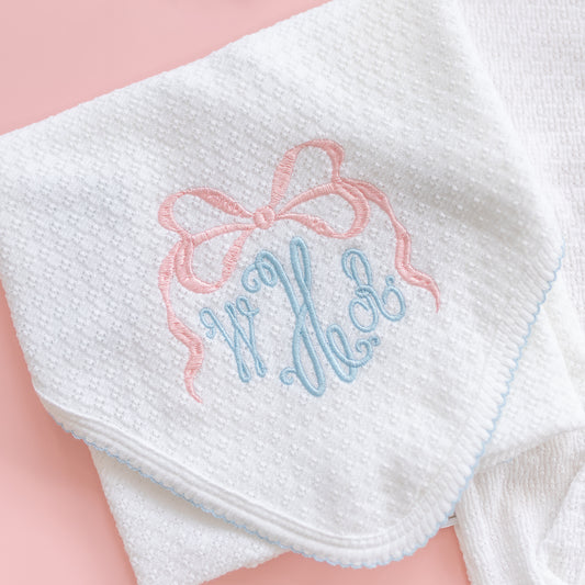 White w/ Blue Trim Swaddle Blanket